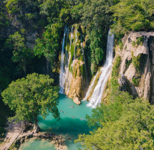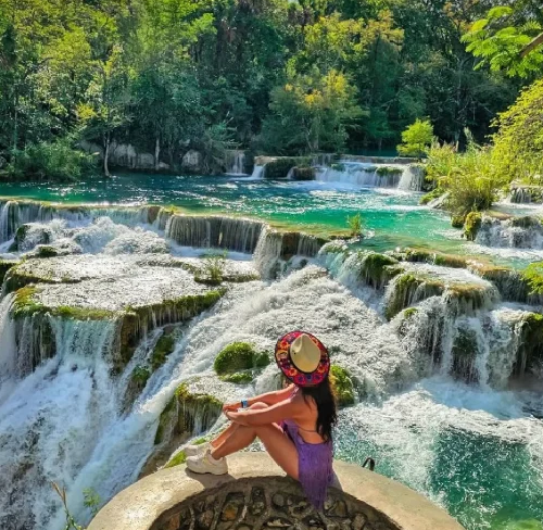Las Cascadas de Minas Viejas se ubican en la Huasteca Potosina, en el municipio de El Naranjo, San Luis Potosí. Son famosas por sus caídas de agua escalonadas, pozas de color turquesa intenso y un entorno natural muy bien conservado. Es uno de los sitios más fotogénicos y tranquilos de la región.